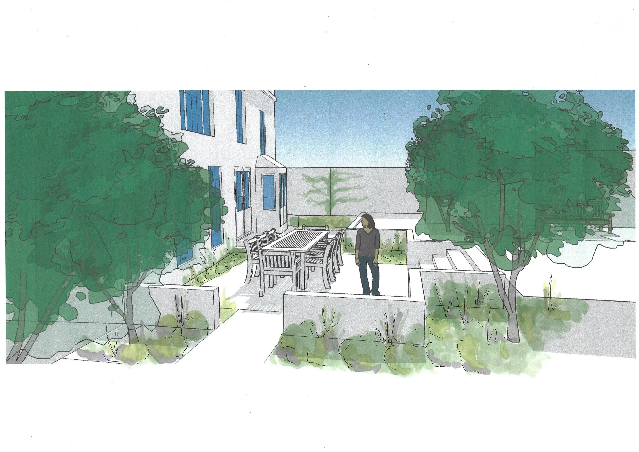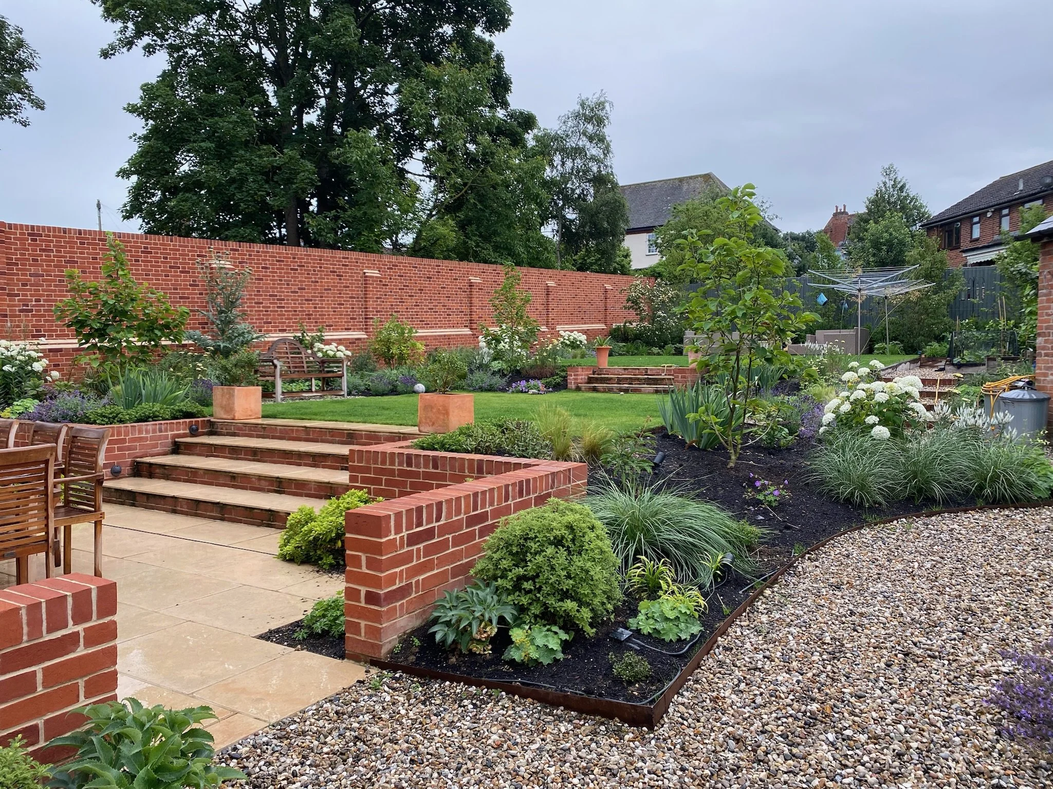 We were asked to design an English country garden in a steeply sloping site at the rear of a house once our clients had completed extensive interior and exterior renovations.