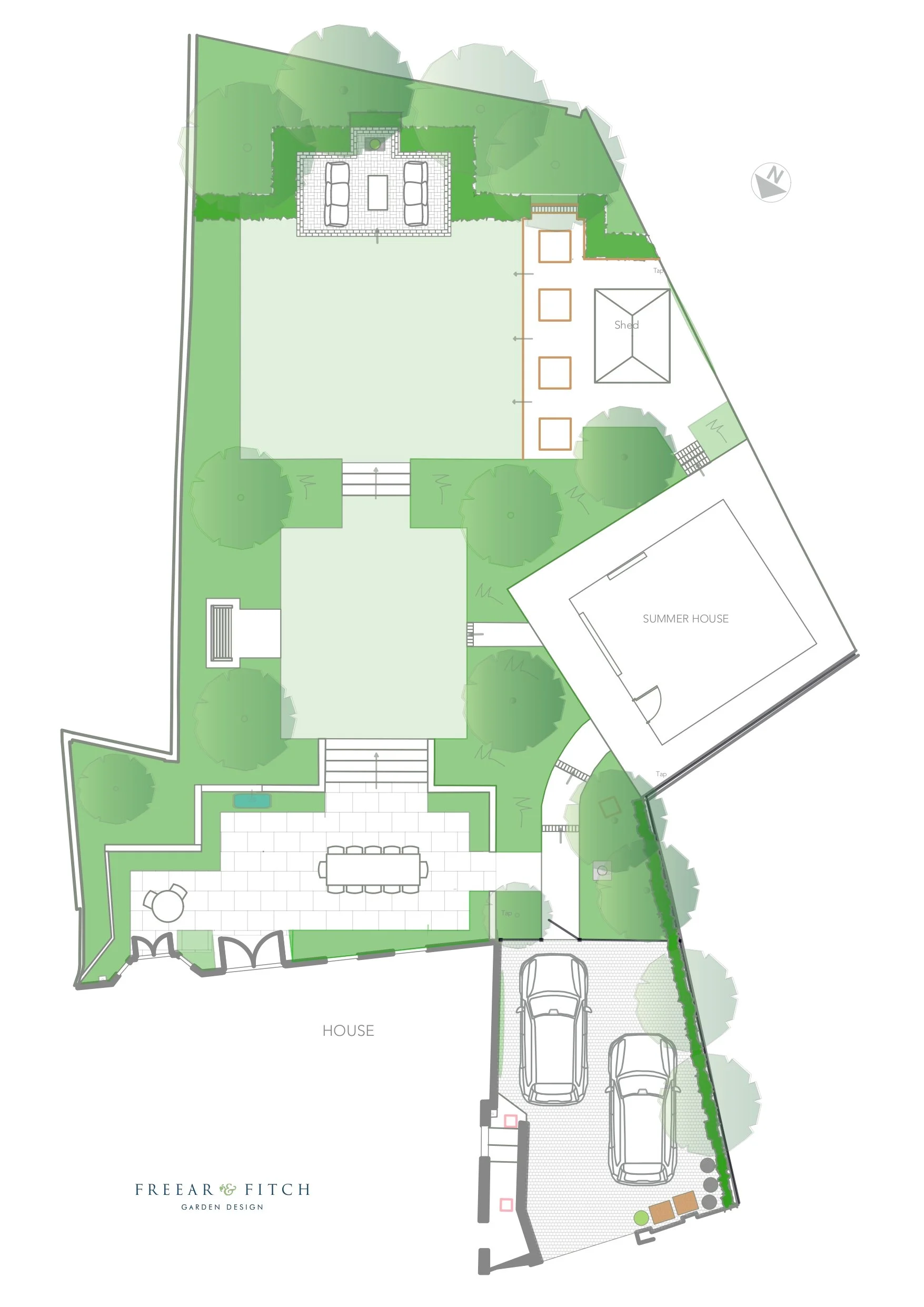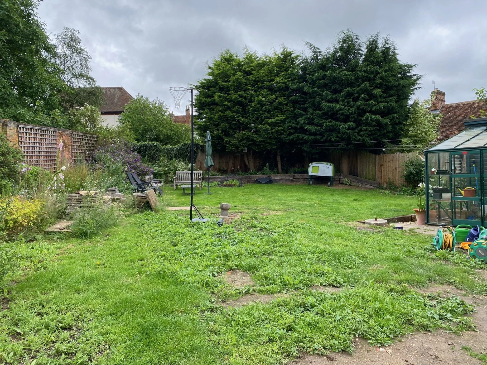 This beautiful Grade II listed Georgian house has great charm with a warm red brick facade, large sash windows and living space spread over three floors offering wide views up the one acre garden. However the previous garden was featureless with no real views from the house and the sloping lawn gave no reason to venture beyond the immediate terrace. Our clients, who are keen gardeners, tasked us with creating a garden that offered them greater possibilities for entertaining whilst retaining the charm of the setting and space.